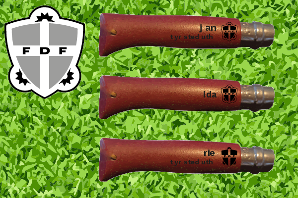 Lokal spejderforening, fik lasergraveret navn og logo i deres runde snitteknive.