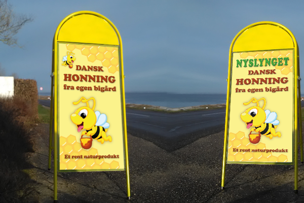 Design og produktion af plakater i UV-bestandig og vandfast materiale til A-skilte.
