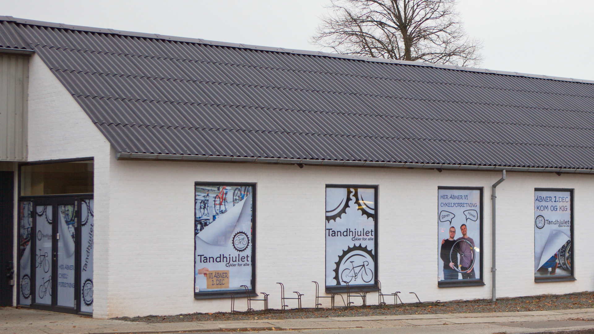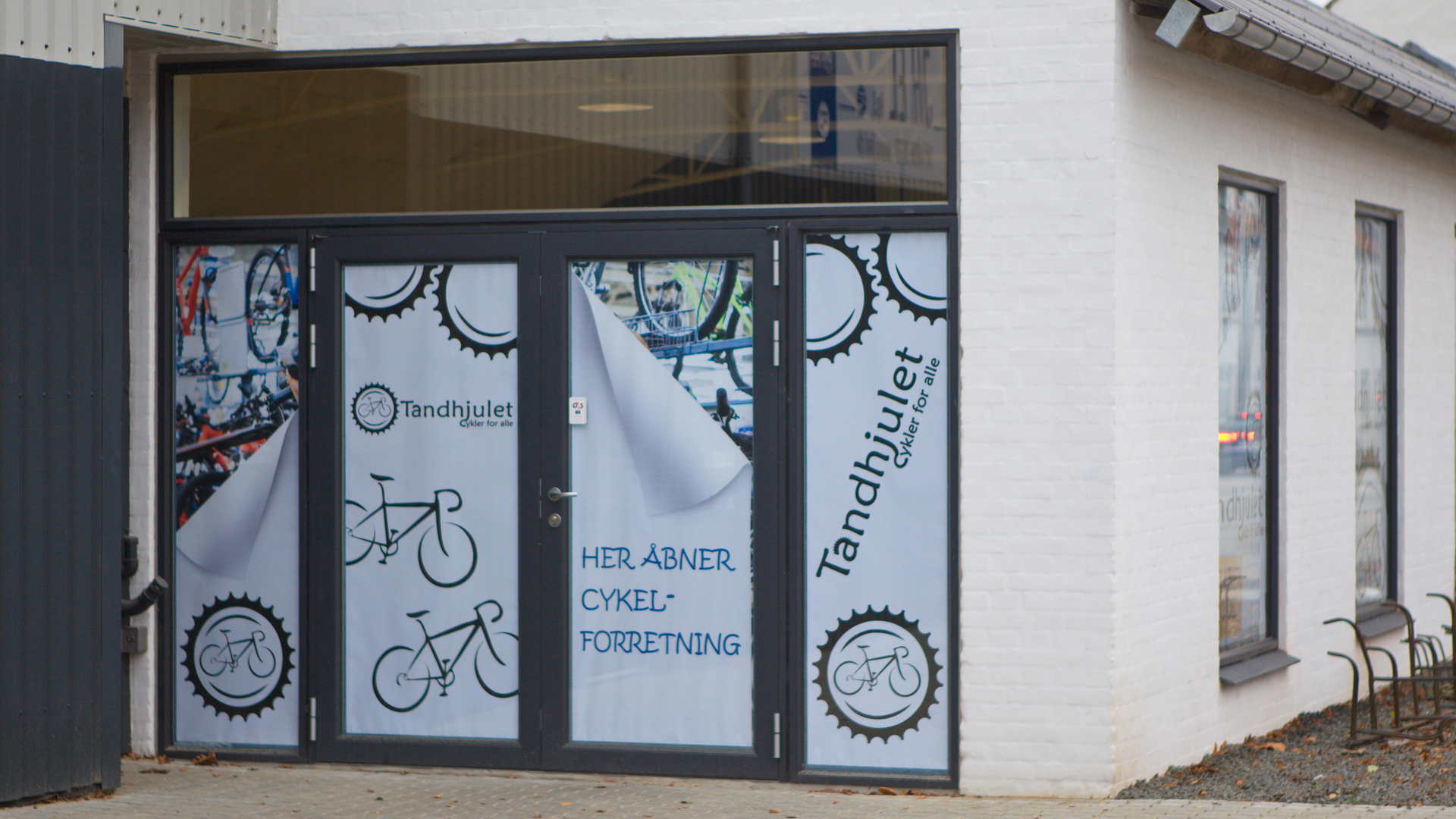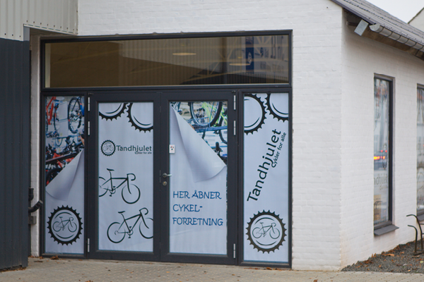 Dekorative plakater til facade vinduerne, mens butikken blev indrettet frem til åbningen.