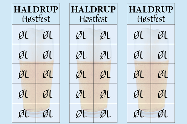 Et simpelt design af ølbiletter til Haldrup Høstfest. Designet efter kundens ønske.
