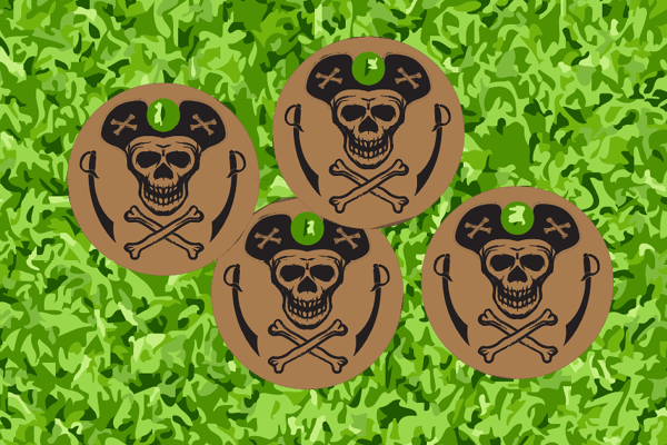 Layout og produktion af piratmønter til lokal spejderforening. Laserskåret på tynde MDF plader.