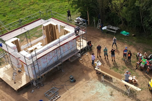 Promovering af EcoCocon moduler ifm skolebyggeri med halmelementer.